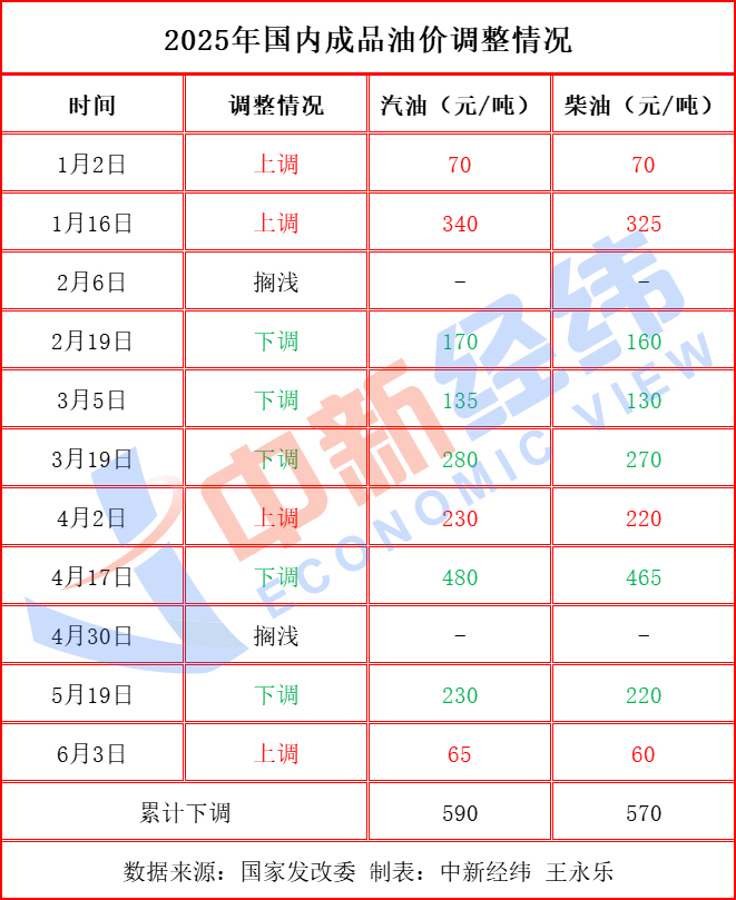 今年以来,国内成品油价已经历十一轮调整,呈现“四涨五跌两搁浅”格局,涨跌互抵后,国内汽、柴油价格每吨较去年底分别下调590元、570元。若本轮油价上调,则将出现连续两轮上调走势,2025年调价格局将变为“五涨五跌两搁浅”。