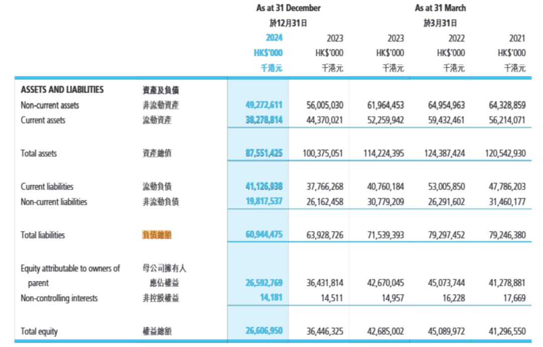 另外,截至2024年年底,华南城总资产为875.51亿港元,总负债约609.44亿港元,有息债务为302.2亿港元,其中即期部分为182.41亿港元,流动负债超过流动资产28.48亿港元。