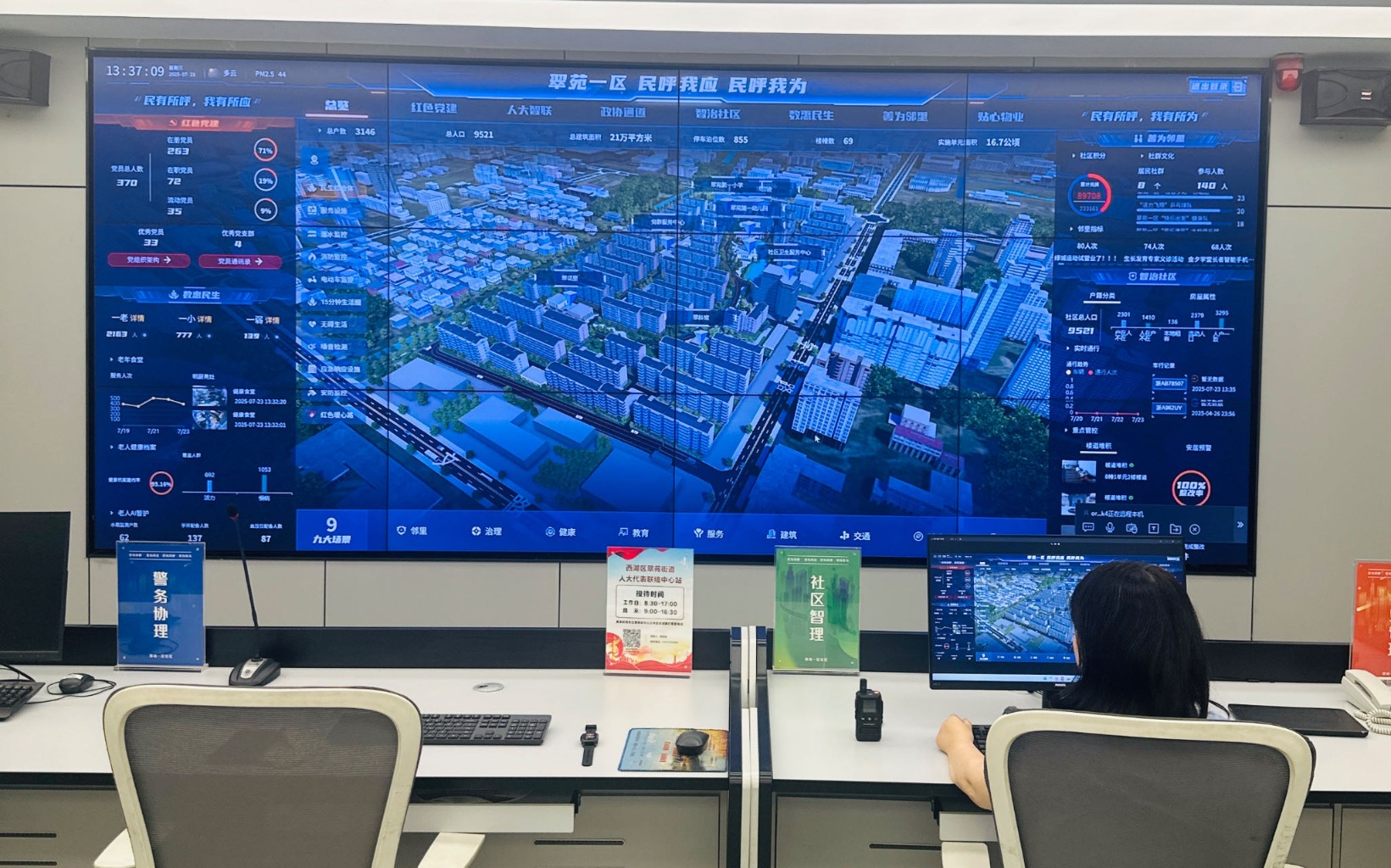 图为浙江杭州西湖区翠苑一区社区智慧大屏