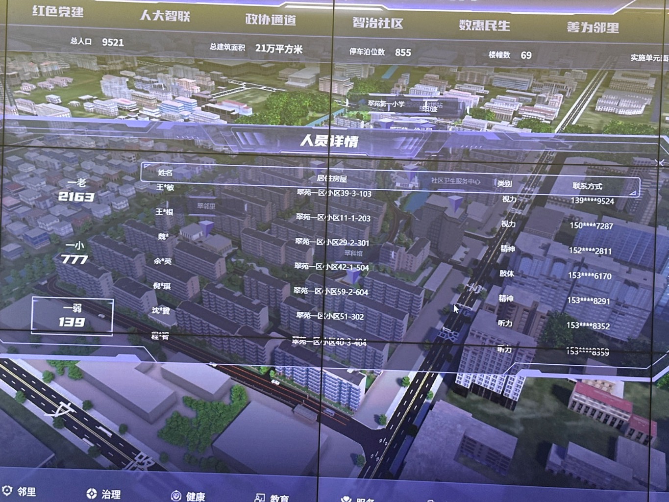 记者在浙江杭州西湖区翠苑一区社区调研时看到,社区安装的智慧大屏仿佛社区的“智慧大脑”,时刻滚动着与居民密切相关的医疗、养老、托幼等信息。让人印象深刻的是,除了给老人配备智能手环,该社区还通过智慧大屏实时关注房间内马桶用水情况,用以判断独居老人活动频率,如超过一定时间未用水,社区就会及时安排工作人员上门询问老人具体情况。