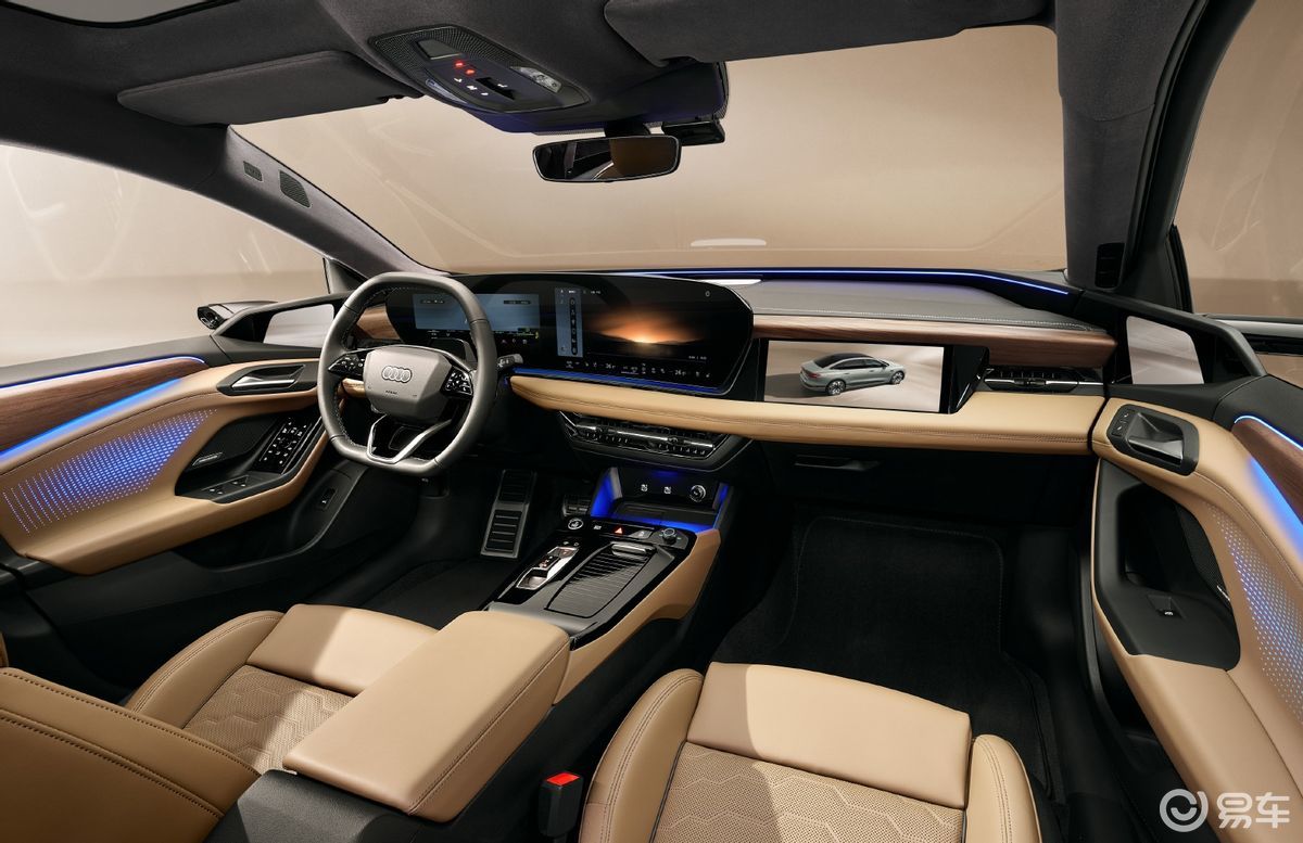进入车内,新车提供四种内饰配色,并配备30色氛围灯,营造出温馨且富有格调的驾乘环境。中控台延续新一代奥迪家族的三屏布局,曲面双联屏搭配抬头显示系统和副驾驶娱乐屏,科技感满满。车机系统支持CarPlay手机互联功能,前排还设有手机无线充电面板,方便实用。高配车型配备前排座椅通风/加热/按摩等功能,以及包含头枕音响在内的Bang&Olufsen品牌音响系统,舒适性与娱乐性兼备。