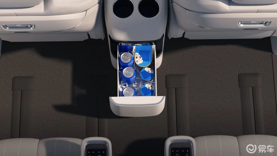 最重要的第二排方面,9.1L大容量冷暖箱(-6 ~50 °C温域),云感SPA座椅支持加热、通风、记忆、SPA级按摩等配置,并且是通过扶手处5.98英寸的功能屏来实现操作,情绪价值到位。另外,三排座椅支持最大180°放平,二排、三排纵向空间均超过1013mm,后备箱标准容积达1000L,并提供163L下沉储物空间。