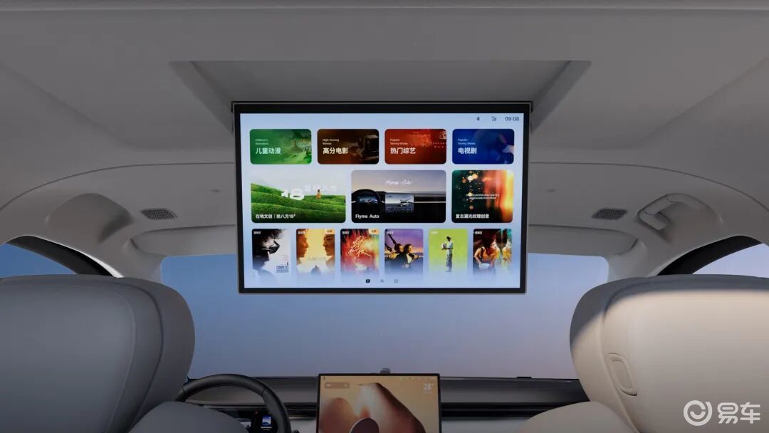 近些年自主品牌们在音响方面不约而同开始了大力宣传,银河V900搭载的Flyme Sound无界之声27扬声器系统,功率2300W,可营造9.1.6声场,并支持AI无麦K歌等功能。与之对应的,则是第二排的17.3英寸娱乐屏。