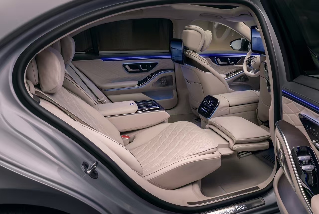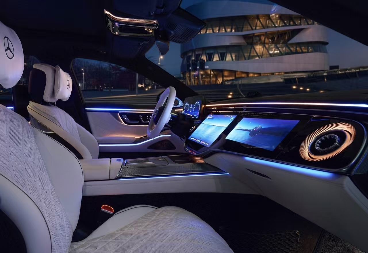这次新款的奔驰S级还有一个很大的变化,就是车内的中控设计了,其实在电气时代,多屏幕已经成为一种趋势,甚至一些专注于性能、赛道的车型也都用上了中控大屏。新款奔驰S级的整个中控布局也采用了现款E级的这种设计,中间是一块14.4英寸的中控屏幕,另外在副驾给到了一块12.3英寸的副驾娱乐屏,整合了最新的MBUX智能交互系统,值得一提的是,未来引入国内的版本,会针对性的进行本土化的融合,比如引入豆包等AI技术,同时一些国人更喜欢使用的APP都可以进行兼容,而且整个语音交互能力也得到了一定的提升。当然,这个中控的变化,还是仁者见仁智者见智吧,你们喜欢这个设计吗?