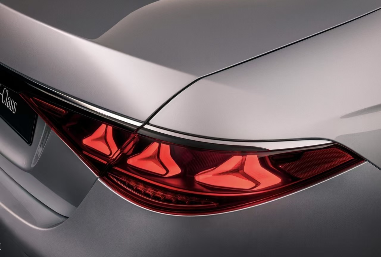 新款的S级车身依旧是雪茄式车身的设计,加上长轴距的视觉效果会显得更加舒展,来到车尾最大的变化是尾灯,三个三叉星辉的点亮效果确实非常出彩,在车流里的辨识度也更高了,这也映射出了一个很有意思的点,就是这个尾灯设计在E级上是两个星辉,有没有一种可能是在C级上变成一个星辉呢?