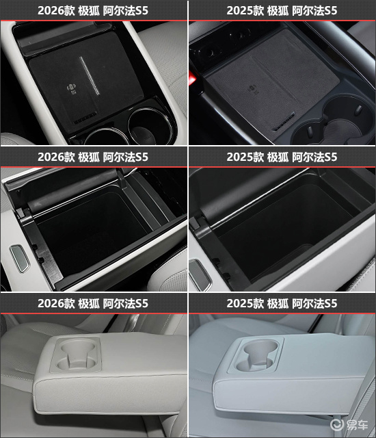 储物方面,新款车型的前排依旧配备50W手机无线充电板,虽然杯架样式有所调整,但是对于实用性影响并不大。至于中央扶手箱以及后排的水杯架,新老两款车型的设计则基本保持一致,能够满足日常使用所需。