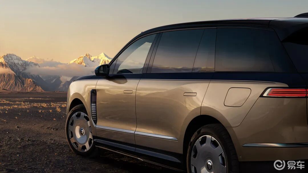 车身侧面采用纯平侧窗、隐藏式水切、隐藏式门把手、电动脚踏板以及近乎水平的宽舷肩线等设计,整体视觉效果干净利落。