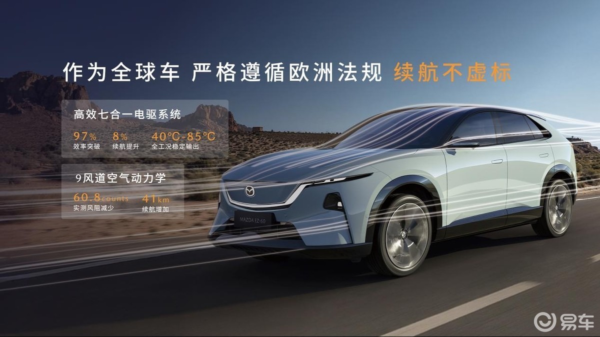 EZ-60的操控以中欧9国道路性能标准为开发基础,集结中国南京、重庆、日本广岛、德国法兰克福三国四地的工程师团队,历经200余种调校方案的反复验证,将马自达“人马一体”驾趣完美融入电动化车型,为用户带来前所未有的驾驶乐趣。