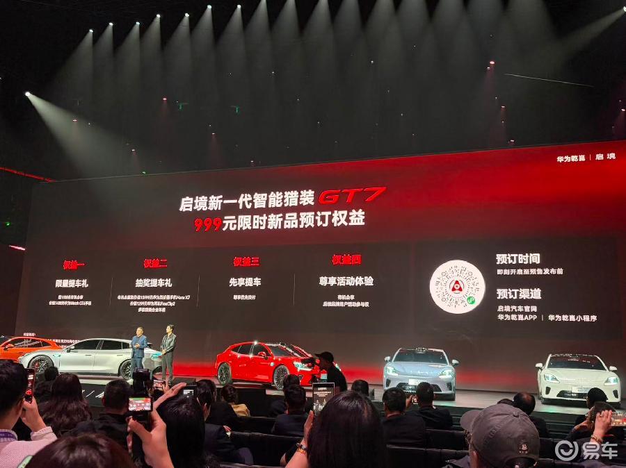 发布会当晚,黄景瑜以“头号玩家”身份亮相,现场扫码下单解锁GT7首位盲订车主身份。即日起,用户可通过启境汽车官网、华为乾崑APP等渠道参与盲订,享受限量提车礼、优先参与品牌活动等权益,盲订权益可与后续预售及上市权益叠加。