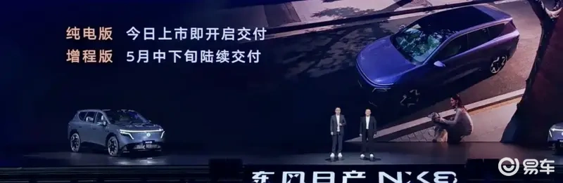 动力方面,东风日产NX8提供纯电、增程双动力选择,纯电车型搭载800V高压碳化硅平台与5C超充技术,其采用单电机布局,最大功率分别为215kW和250kW,并分别提供73kWh和81kWh两种电池组,对应续航里程分别为580/565km和650/630km。其峰值充电功率达463kW,充电6分钟续航提升300km,10%充至80%仅需12分钟。